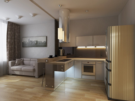 Стоит учесть общую площадь помещений, в частности гостиной с кухней, вариант планировки. Здесь важно иметь возможность разместить мебель по своему вкусу, создать уголок отдыха отдаленный от плиты и мойки.